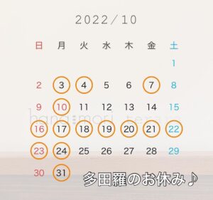 10月お休みのお知らせ♪